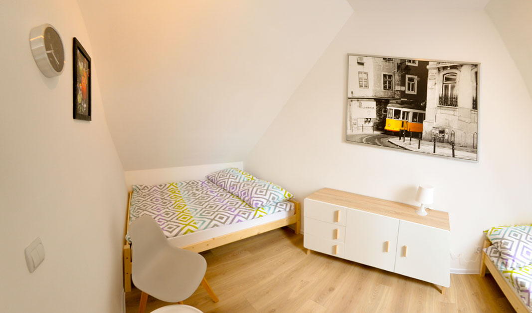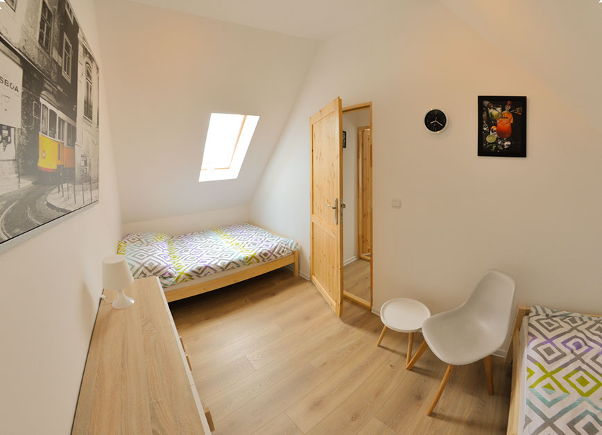 Beide Häuser besitzen drei separate Schlafzimmer, die in fantastische Bette, Schränke und ein kleines Bücherschrank ausgestattet wurden. In jedem Haus befindet sich ein Schlafzimmer im Erdgeschoss und wurde in ein 140x200 cm Bett ausgestattet. Zwei weitere Schlafzimmer befinden sich auf der Etage und haben zwei 140x200 cm und zwei 2x140x200 cm.