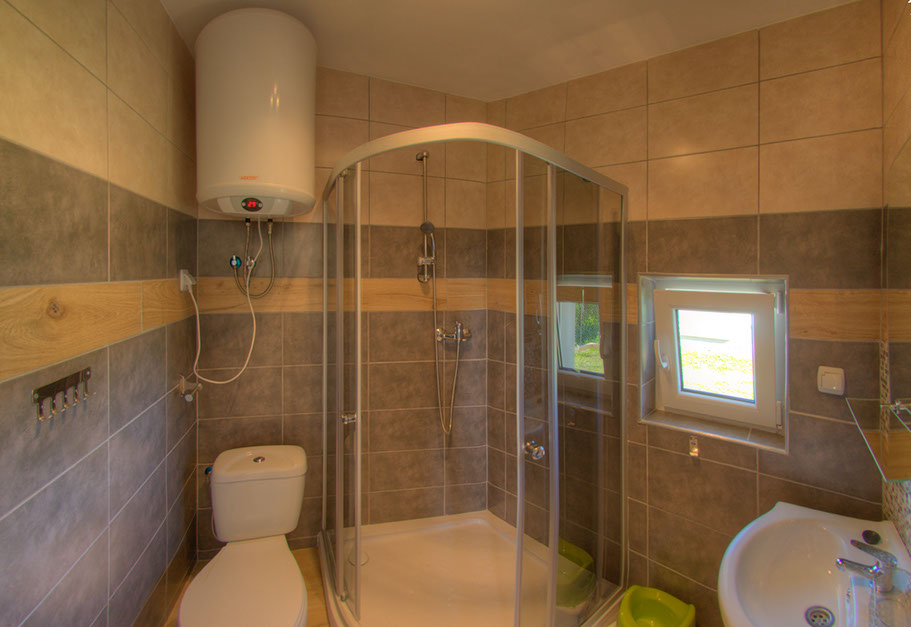 Das Bad wurde in Duschkabine, WC, Waschmaschine mit 1200 Umdrehungen und einen Wäschetrockner ausgestattet.