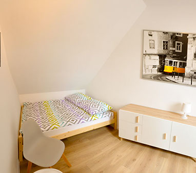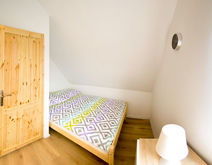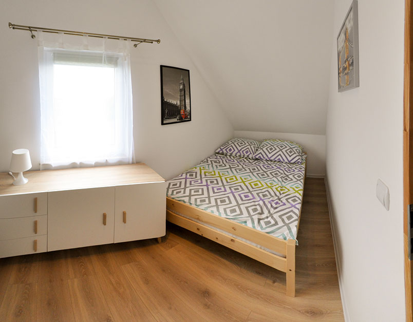 Beide Häuser besitzen drei separate Schlafzimmer, die in fantastische Bette, Schränke und ein kleines Bücherschrank ausgestattet wurden. In jedem Haus befindet sich ein Schlafzimmer im Erdgeschoss und wurde in ein 140x200 cm Bett ausgestattet. Zwei weitere Schlafzimmer befinden sich auf der Etage und haben zwei 140x200 cm und zwei 2x140x200 cm.